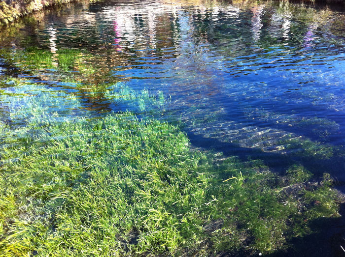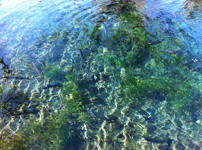 忍野の湧水池はどこまでも透明で見ていて飽きない。